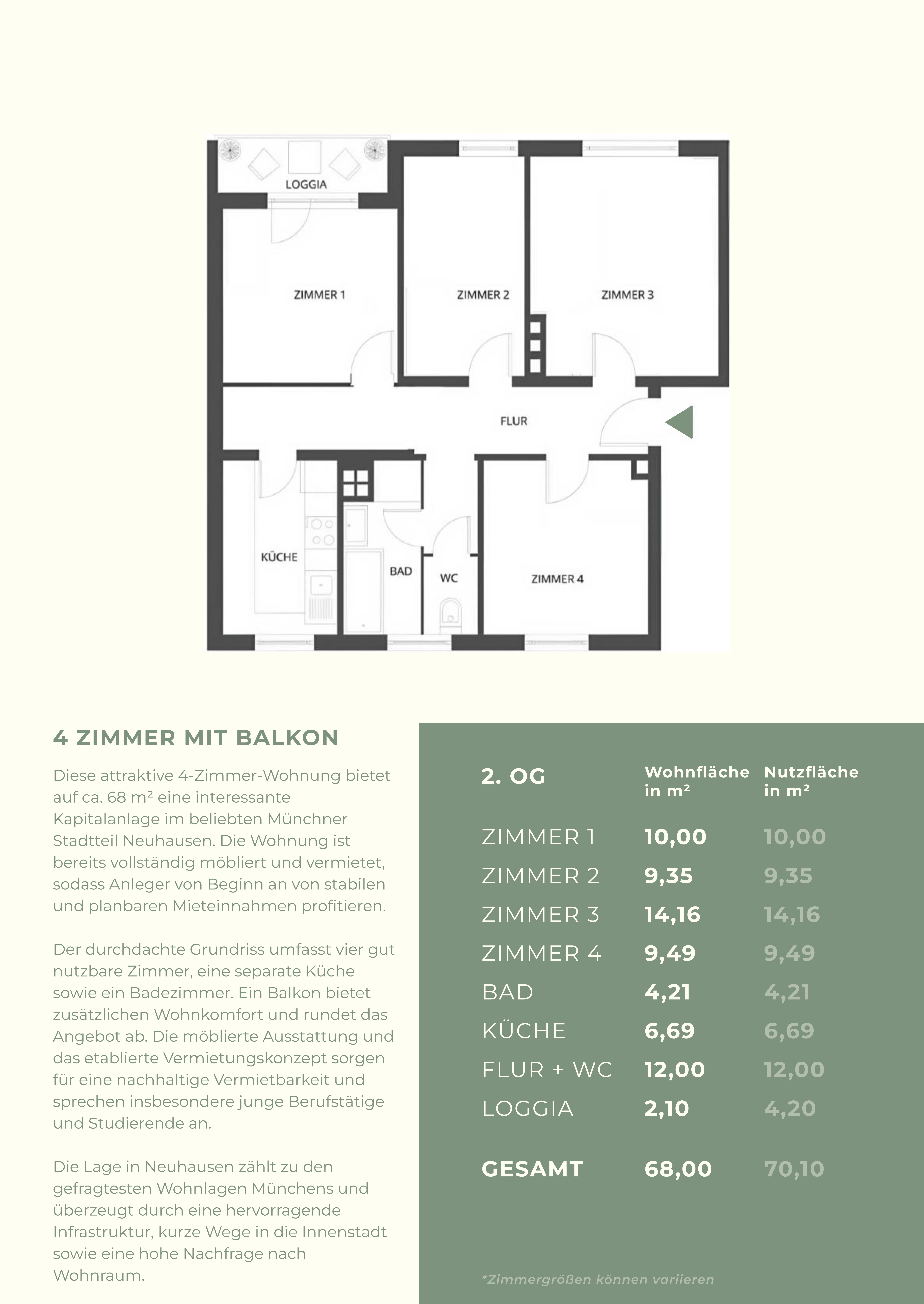 Der durchdachte Grundriss umfasst vier - alle vom Flur aus begehbare - Zimmer, eine separate Küche sowie ein Badezimmer. Ein Balkon bietet zusätzlichen Wohnkomfort und rundet das Angebot ab. Die möblierte Ausstattung und das etablierte Vermietungskonzept sorgen für eine nachhaltige Vermietbarkeit und sprechen insbesondere junge Berufstätige und Studierende an.